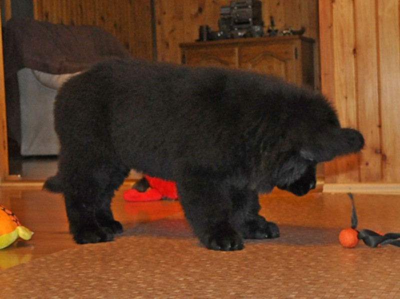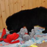 Fantom ( 29.09.2012) młodziutki pies, bardzo energiczny, skory do każdej zabawy, przyjaźnie nastawiony w każdej sytuacji. Pogodny i wesoły. Ma cudowny charakter - niekonfliktowy, łatwo nawiązuje kontakt i z ludźmi i z innymi psami. Mocnej budowy, o bardzo samczej w wyrazie głowie i o przepięknych migdałowych oczach. Fantom urodził się hodowli Faundland - zajmującej się hodowlą i promowaniem tej rasy od bardzo wielu lat - jego właścicielem jest p.Andras Polgar znany i ceniony sędzia kynologiczny. Od kilku miesięcy Fantom "mieszka" z nami - jest więc możliwość poznania nie tylko mamy szczeniąt ale i taty. Fantom zdobył już 4 wnioski CAC - uprawniające do uzyskania dorosłego Championatu i 2 wnioski CACIB ( z 4 potrzebnych do uzyskania tytuły Interchampiona). Doskonałe wyniki badań - czyli RGN stawów biodrowych i łokciowych - wolny od dysplazji ( HD A, ED 0/0 ), cystynuria - genetycznie wolny od tej choroby.