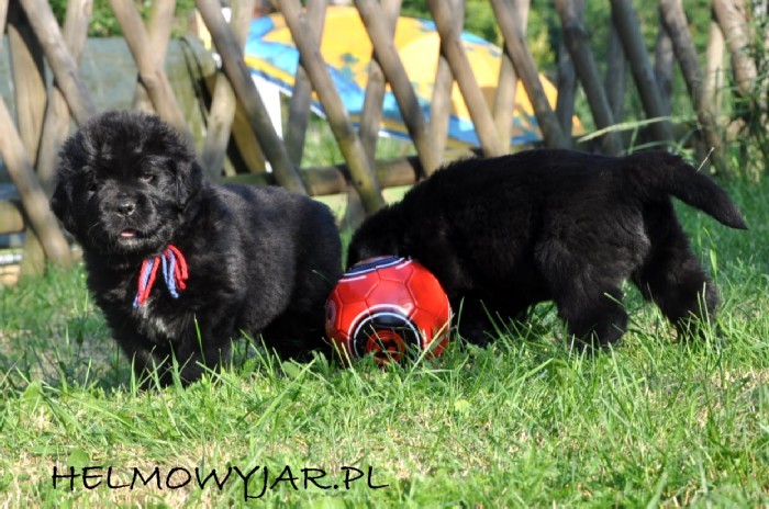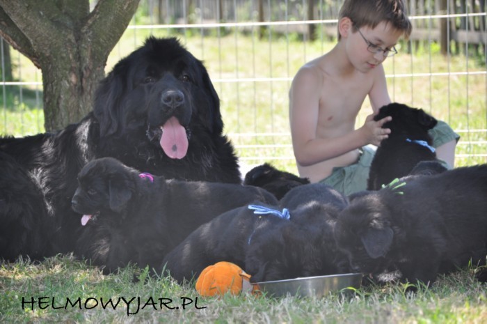Mamą szczeniąt - 3 piesków i 5 suczek ( wszystkie maluchy są czarne ) jest urodzona u nas młoda - 2,5 letnia suczka. Farina jest dużą, o mocnej kości, proporcjonalnie zbudowana nowofundlandką. Ma elegancką, suczą w wyrazie głowę i piękne ciemno brązowe oczy, które potrafią " wyprosić" u mnie wszystko...Bardzo cenię u Fariny jej charakter i temperament. Jest wesoła i skora do zabawy - w końcu ma dopiero 2,5 roku - i to zapewne odziedziczyła po swojej żywiołowej babci Lunie. A po swojej mamie Ajshy potrafi zachować spokój, wyciszyć się, być niezwykle ostrożną - co świetnie było widać podczas jej zabaw z całkiem małymi dziecmi naszych znajomych, a teraz jest tak pożadane gdy z taką troską i uwagą zajmuje sie swoimi maleństwami. Więcej o Farinie w jej zakładce i w Galerii...
