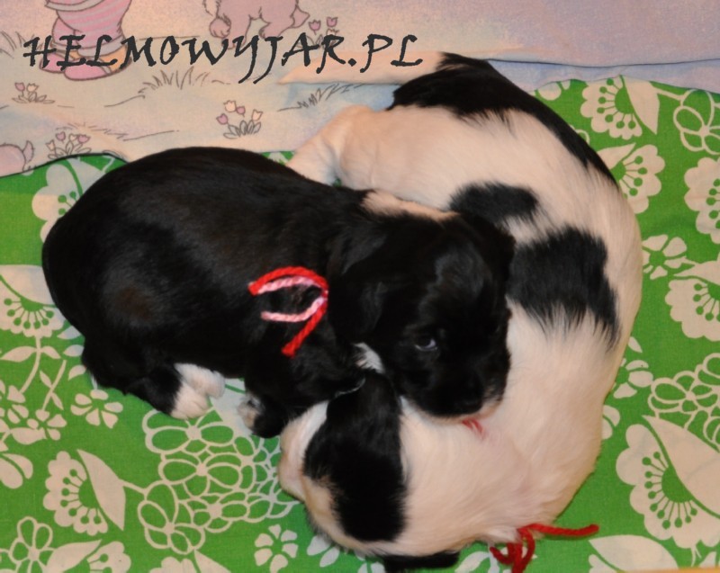 Mama szczeniąt to MORIA z Helmowego Jaru. ur. 2 listopada 2012 r.  Młodzieżowy Champion Polski , Champion Polski, Junior Winner x 3, Best Junior of Breed, Zwycięzca Płci Przeciwnej ( Best of Sex ) , Najlepsza orosła Suka x 3, Zwycięzca Rasy ( Best of Breed ) x 2,  CWC  x 5,  ResCACIB....                                                                                                                       Badania : RGN stawów biodrowych i łokciowych wyk.u p.dr.J.Siembiedy wyniki doskonałe czyli -  HD A, ED 0/0,  na podstawie badań DNA ojca i dziadków wolna od chorób genetycznych PLL, NCL, Dodatkowo Kamg Rimpoche czyli tata Morii ma wykonane badania genetyczne w kierunku PRA3 i rcd4 - wynik CLEAR