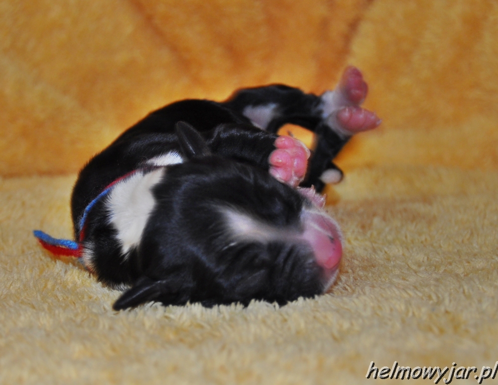 Aby łatwo było odróżnić szczenięta Morii od szczeniąt Glorii, oznaczyłam miot K podwójnymi kolorami.