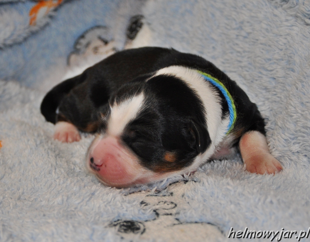 Piesek niebiesko-zielony Bardzo ciekawe trójkolorowe umaszczenie